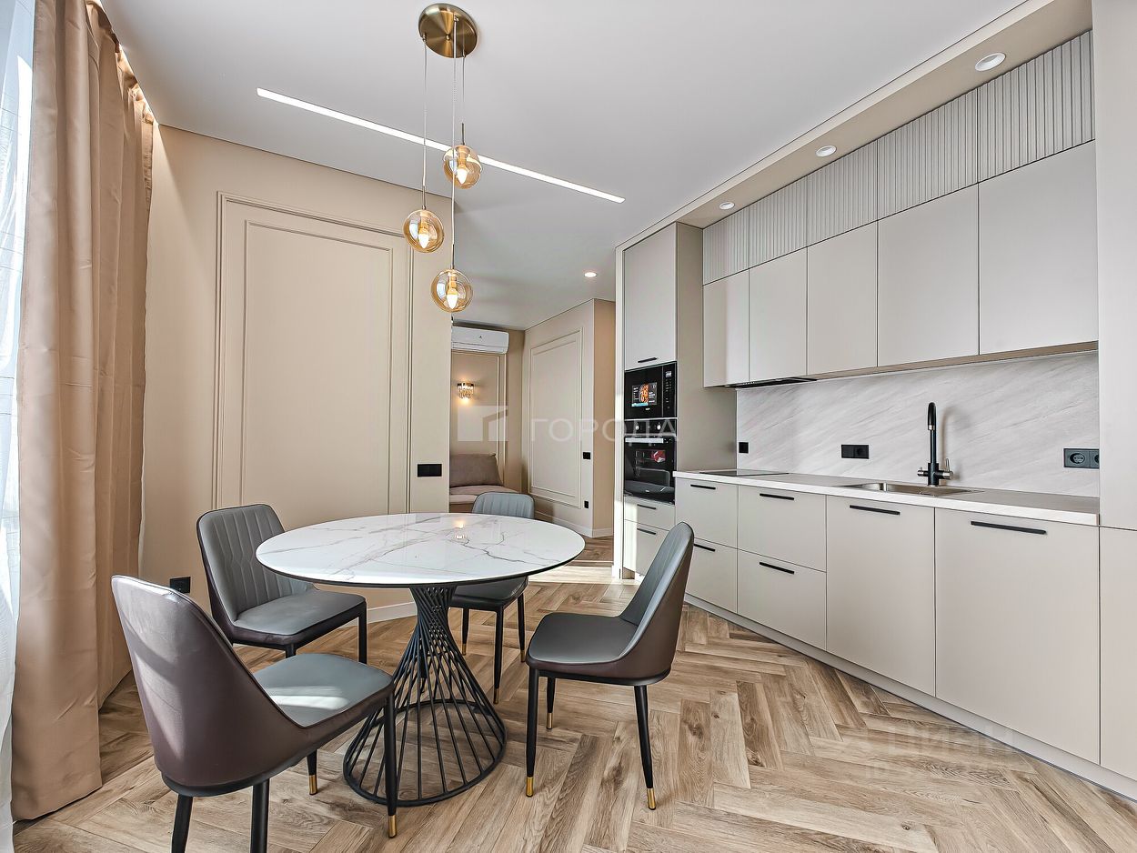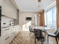 Квартира расположена на 15 этаже 24-этажного кирпично-монолитного дома, построенного в 2024 году. Общая площадь квартиры составляет 59 кв. м, из которых 46 кв. м — жилая площадь, 10 кв. м — кухня. Также вместе с квартирой вы можете снять парковочное место в подземной парковке за 10 000 рублей.