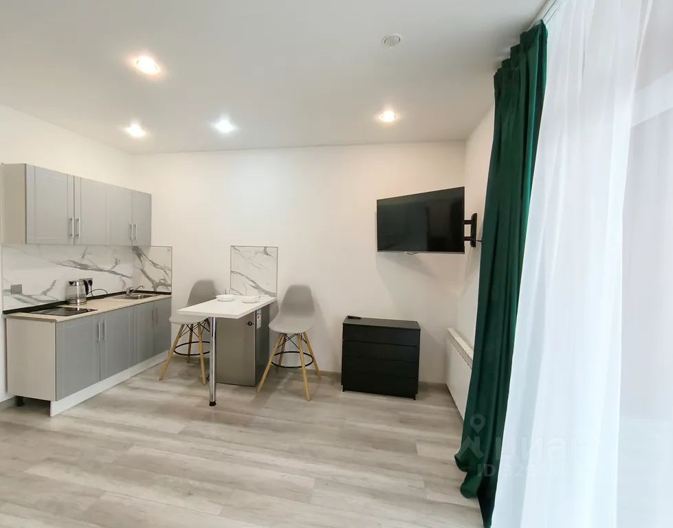 Однокомнатная квартира-студия с выделенной кухней в двух минутах ходьбы от станции метро "Октябрьская".