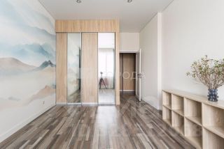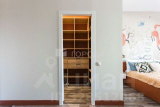 В спальне просторная гардеробная и рабочая зона.