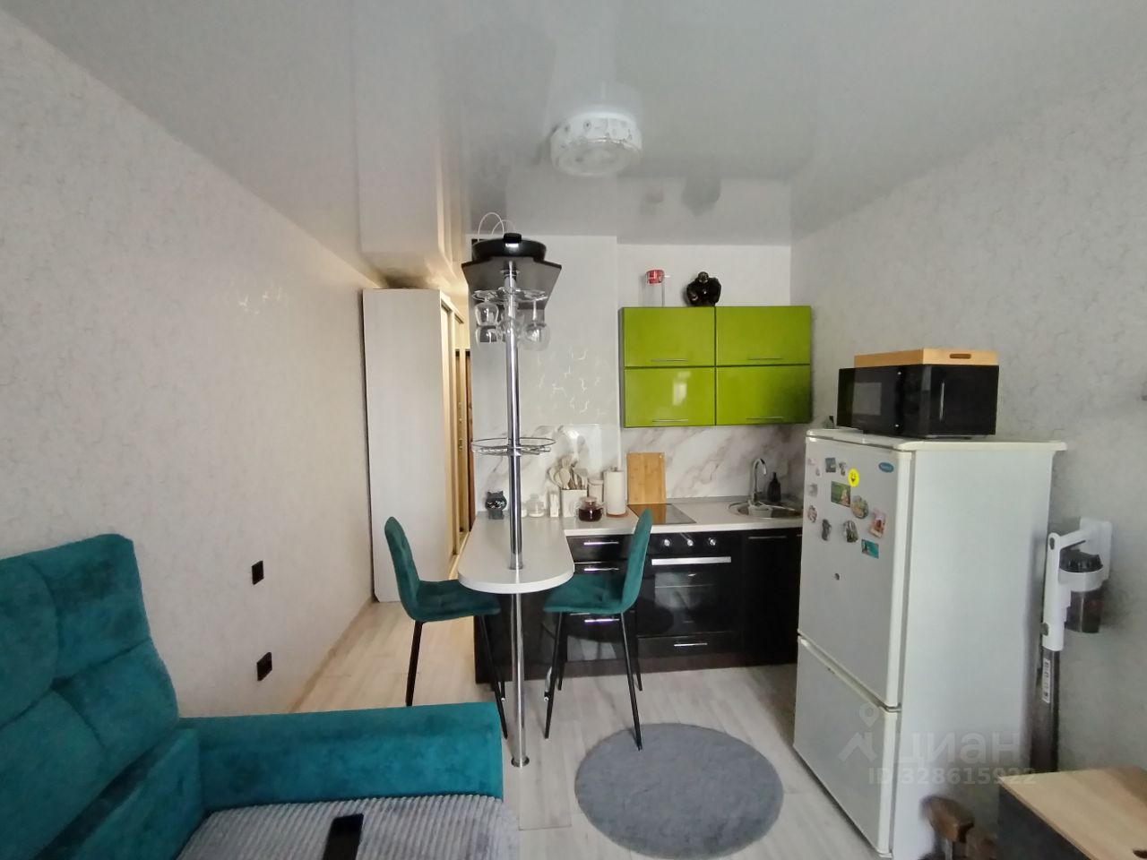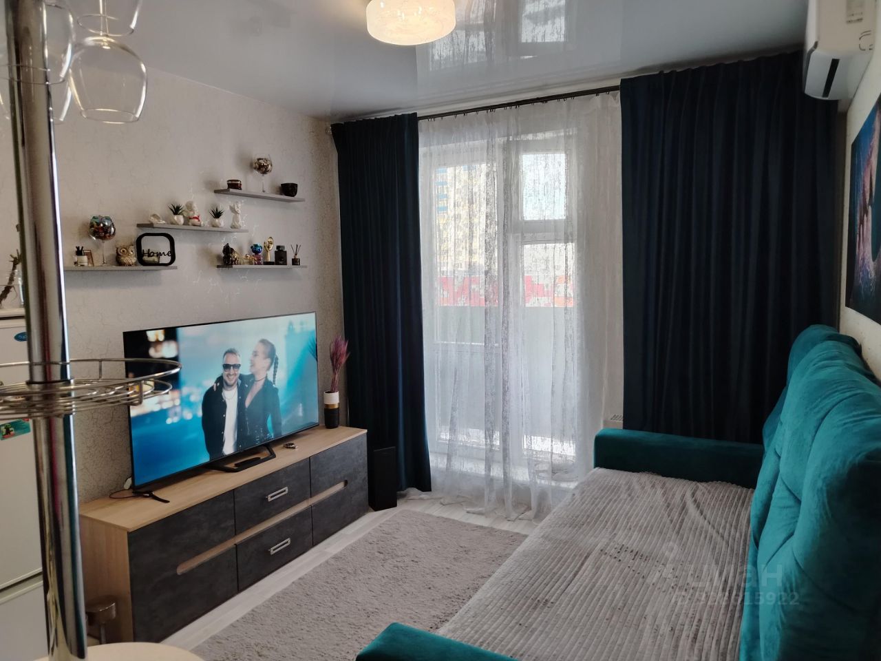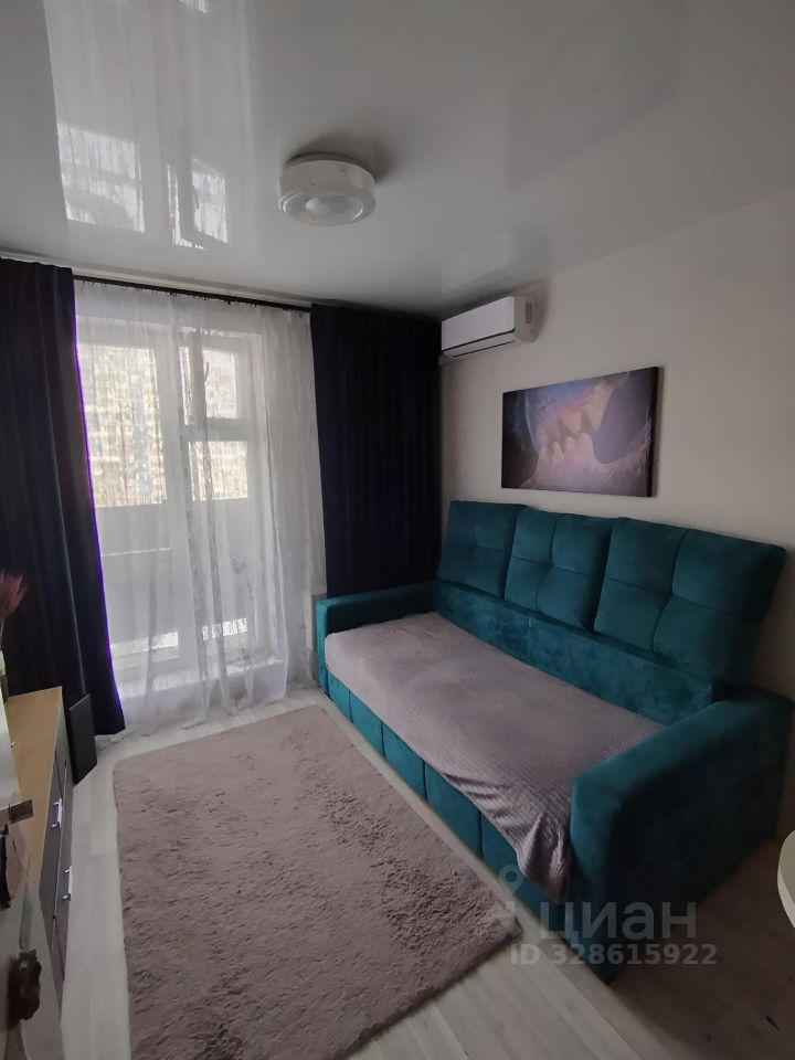 Квартира с евроремонтом, полностью готова к проживанию. Просторная комната с мебелью и техникой: есть кондиционер, холодильник, телевизор и стиральная машина. Кухня оборудована всем необходимым. Санузел совмещённый, установлена ванна. Высота потолков — 2.5 метра, окна выходят во двор, что обеспечивает тишину и спокойствие.