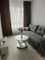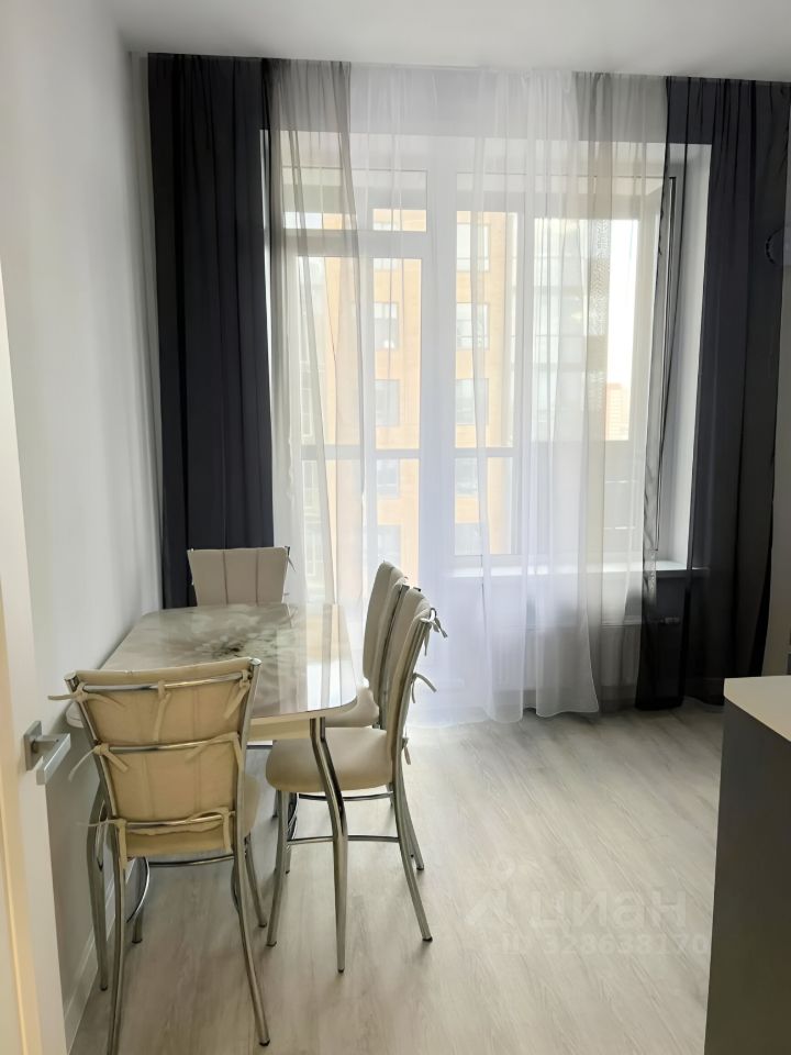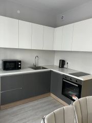 Сдается уютная однокомнатная квартира с евроремонтом на девятом этаже десятиэтажного дома. Общая площадь составляет 34 кв. м, кухня просторная — 9.6 кв. м. Из окон открывается вид во двор. Дом оборудован как пассажирским, так и грузовым лифтами, а также наземной парковкой, что удобно для жильцов с автомобилями.
