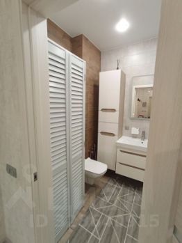 Два санузла (5,5 и 3,7 кв.м). В СУ стиральная машинка, шкафчики для хранения.