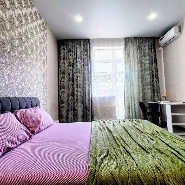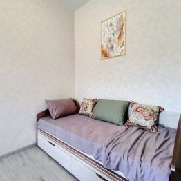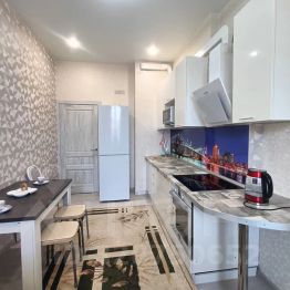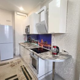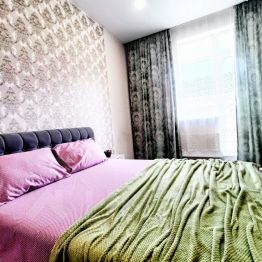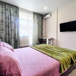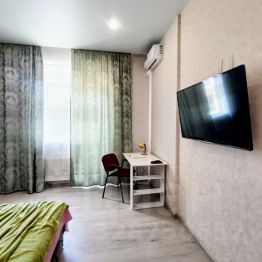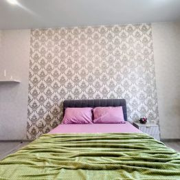 Большая квартира как двухкомнатная студия вмещает до 5 человек, либо 3 раздельных места. В комнате двуспальная и односпальная кровати и телевизор, на кухне диван раскладывается в кровать, а также обеденный стол, печь, микроволновка, чайник, холодильник, посуда. В ванной комнате стиральная машинка и установлен водонагреватель (всегда есть горячая вода!)