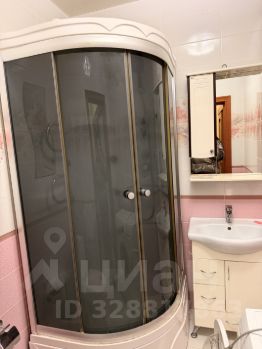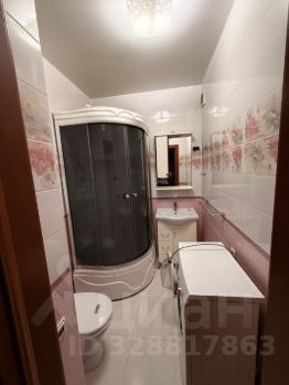 Санузел совмещенный, оснащен душевой кабиной и стиральной машиной.