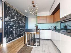 • Состояние: Квартира укомплектована всей необходимой мебелью и бытовой техникой премиального сегмента. Интерьер выполнен в лаконичном стиле, не перегружен деталями.