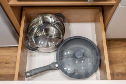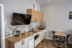 Кухонная зона со всем необходимым (посуда для приготовления и сервировки стола).