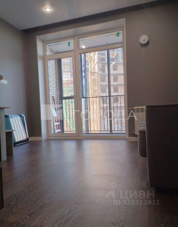 Квартира расположена на 13-м этаже 17-этажного кирпично-монолитного дома, построенного в 2023 году. Из окон открывается вид на улицу. Общая площадь студии — 22 кв. м, жилая — 16 кв. м, площадь кухни — 3 кв. м.