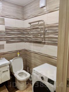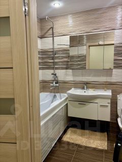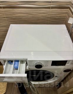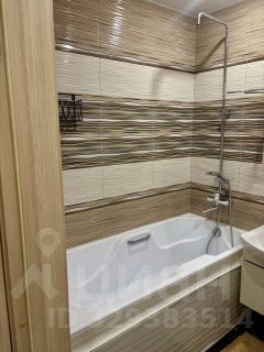 Санузел: Совмещенный, выполнен в теплой кофейно-бежевой гамме. Установлена полноценная ванна, зеркальный шкафчик для мелочей, электрический полотенцесушитель и стиральная машина Beko.
