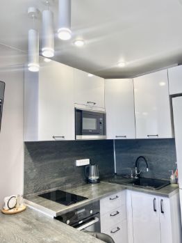 В квартире имеется вся необходимая новая (не с рук купленная) бытовая техника: стиральная машина, холодильник, встраиваемая микроволновка, плита, телевизор. Сушилка для белья. Интернет-кабель уже протянут за телевизором. Комфортное количество шкафов и полочек для хранения вещей. Новый диван.