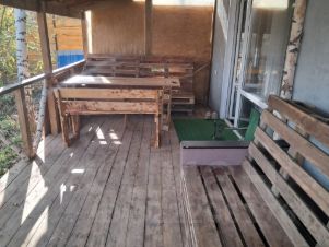 Есть отличная турецкая баня, большая терасса и чудесный лесок на участке с прекрасными березками.