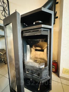 Просторная гостиная с настоящим дровяным камином и панорамным окном. Огонь в камине, деревянный потолок необычной формы — идеальные декорации для уютных зимних вечеров.