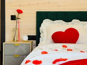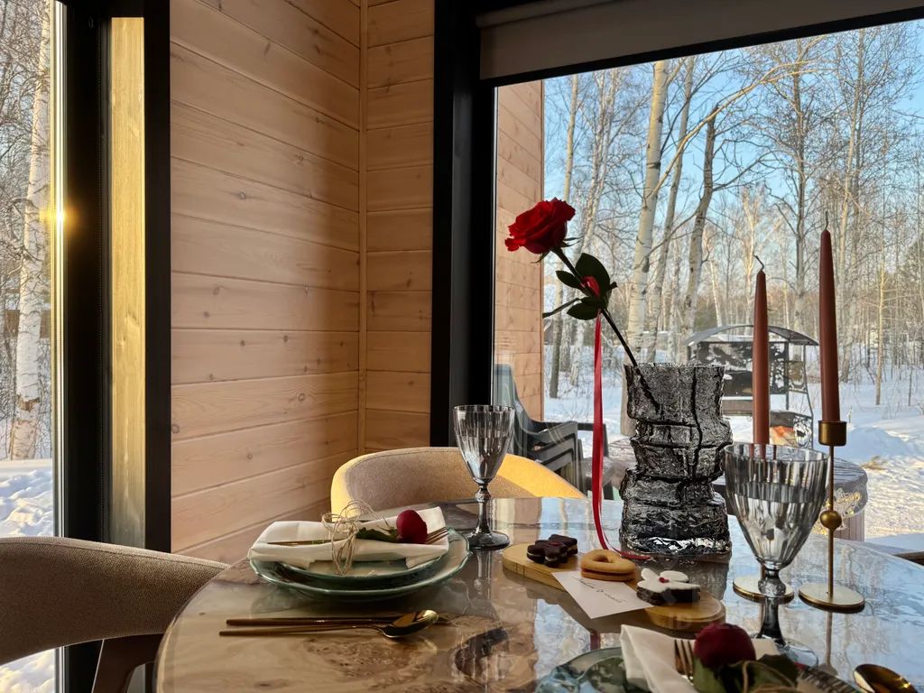 - изолированная спальня 12 м² с двуспальной кроватью queen-size 160*200, шкафом, отдельным телевизором со Smart-TV, а также шикарным видом на лес (особенно приятно встречать рассвет)