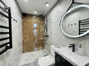 - ванная комната с тропическим душем, полотенцесушителем и феном