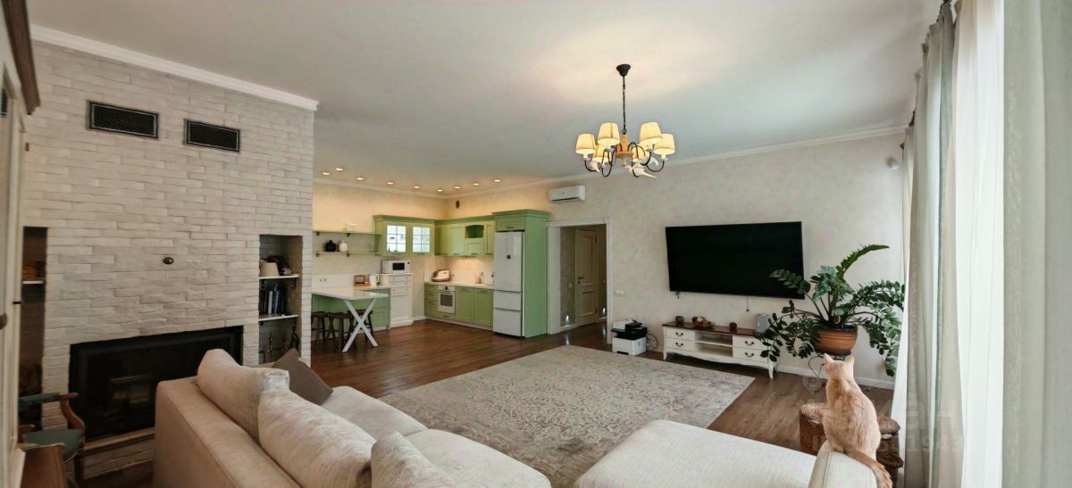 В доме размещена большая гостиная с кухонной зоной , гардеробная.