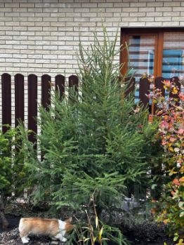 - красивейший ландшафтный дизайн с высаженными пушистыми елями и аккуратными газонами ;