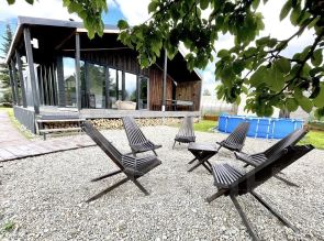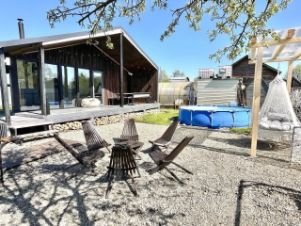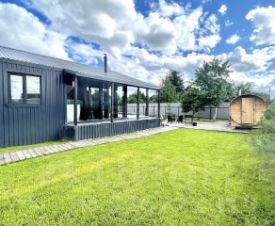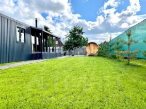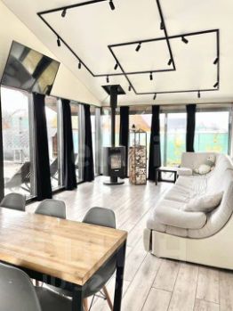 Объект сдан под ключ: в нем выполнен современный ремонт, продумана практичная планировка с двумя отдельными спальнями, объединенной кухней-гостиной, и предоставляется вся необходимая мебель, техника и утварь. Ключевые инженерные коммуникации — электричество, вода, септик и интернет — уже подключены. В гостиной установлен кондиционер и панорамные окна, наполняющие пространство светом и открывающие вид на ухоженную территорию, а камин создает атмосферу уюта в холодное время года. Перед домом обустроена парковка с раздвижными воротами. Участок благоустроен: вымощены дорожки, разбит газон, высажены сосны.