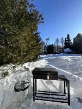 На улице оборудована мангальная зона у каждого домика. Решетка и шампура есть.