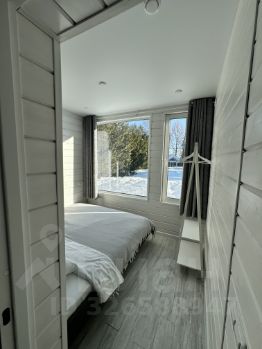 В домике оборудованная спальная комната, где расположена двуспальная кровать на 180см.