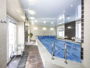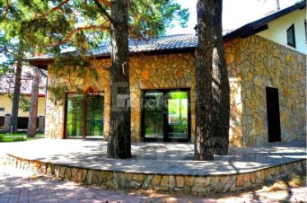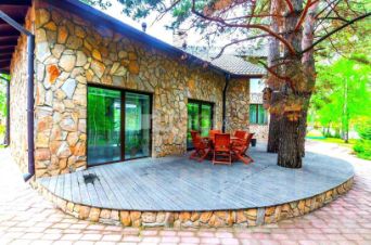 Правое крыло-сауна с бассейном, центральная часть жилая. Дизайн выполнен в строгом стиле-цветовая гамма тёмных и светлых тонов соответствует концепции сдержанного и дорогого интерьера. В доме все функционально-встроенная мебель, техника,корпусная мебель, высококачественный санфаянс и светотехника известных итальянских мастеров. Сам дом расположен на участке 16 соток и гармонично вписан в лесной массив прилегающего смежного участка 27 соток. Здесь по максимуму сохранены все окружающие его деревья-сосны, ели, березы. Некоторые из них растут на мощеной террасе у выхода из бассейна.