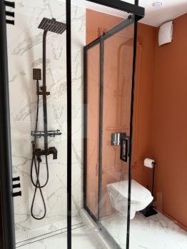 - туалет, душ ( фен , зубные щетки , гель для душа и шампунь , халаты )