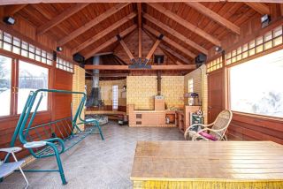 Уютное патио (60 м²) из бруса с панорамными окнами, стильной ротанговой мебелью, ухоженными газонами, цветниками и вечнозелёными елями место, где приятно проводить время с семьей и друзьями.