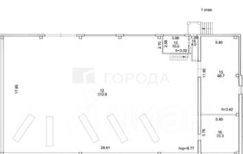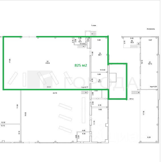 Помещение разделено на 1 этаж 700 м2 и антресоль 124,4 м2 можно будет использовать под АБК
