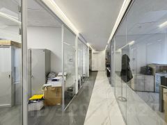 Выполнен качественный современный ремонт с грамотным зонированием: 2 свободных зала, 2 санузла, оборудованы стеклянные перегородки.
