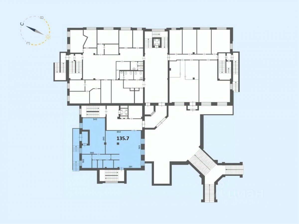 Продажа офисного помещения на первом этаже площадью 135.7 кв.м. в 10 минутах ходьбы от пл. Ленина.
