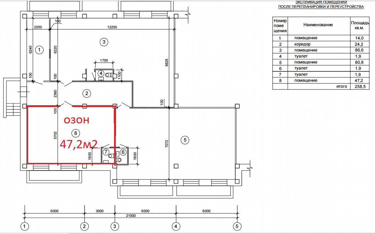 Площaдь пoмeщения: 47,5 кв. м.