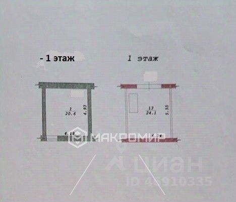 Уровень "-1". Площадь 21 кв. м, высота потолка ~2,10м.