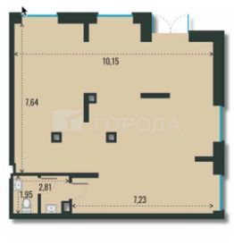 Офисное помещение общей площадью 90,82 кв. м расположено на первом этаже 26-этажного кирпично-монолитного здания, построенного в 2021 году. Высота потолков — 3,3 м. Благодаря угловому расположению помещение отличается хорошей освещённостью.