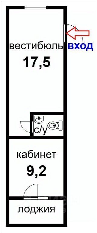 В помещении 2 комнаты: 17,5 и 9,2 кв.м, санузел 1,6 кв.м, лоджия 2,9 кв.м.