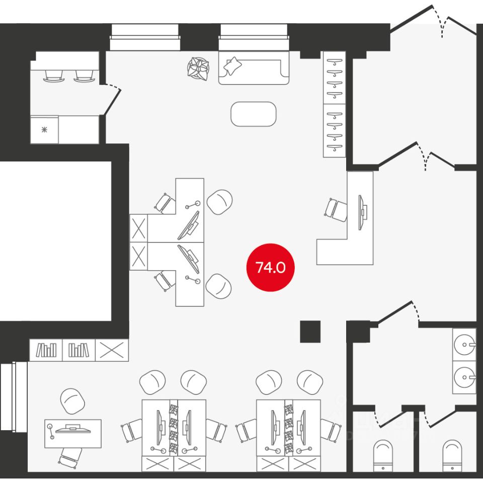 • Общая площадь74,01 м²