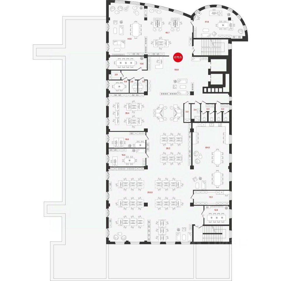 Офисы от 662 до 711 м²