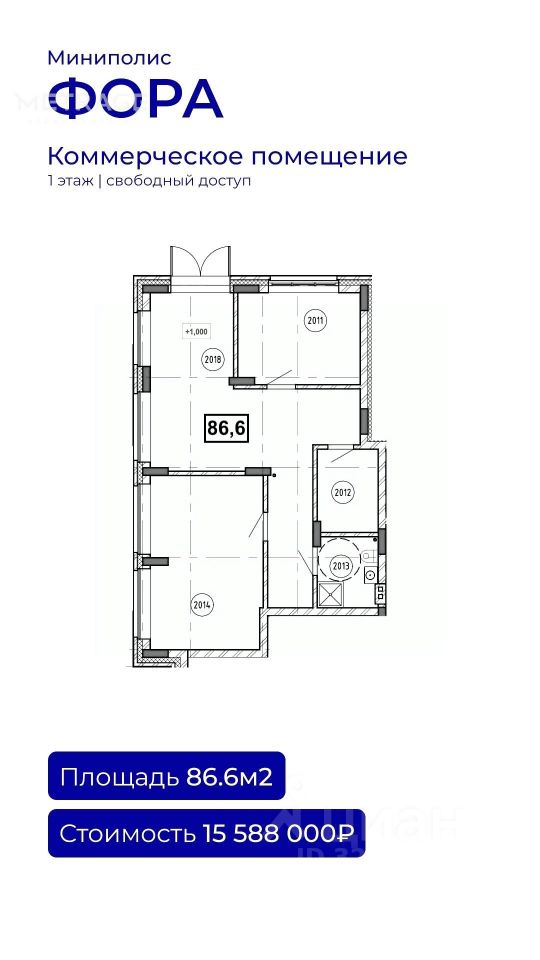 Арт. 22745 Продается коммерческое помещение 86,6 м² в ЖК "Фора". Готовое решение для вашего бизнеса.