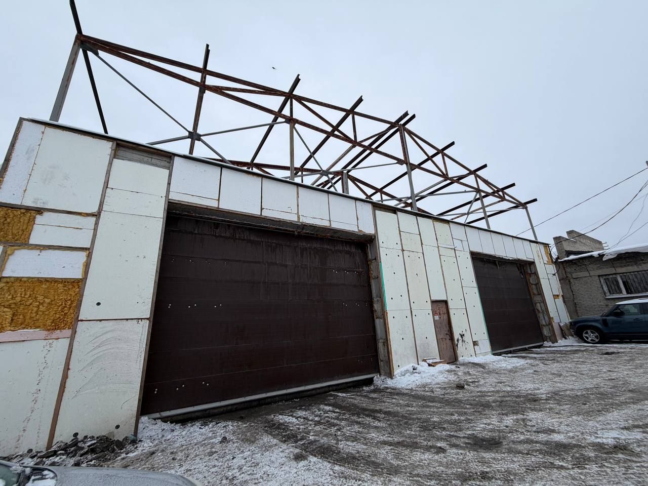 Материал стен - железобетонные блоки, утеплитель. Эл. мощность - 20 кВт.