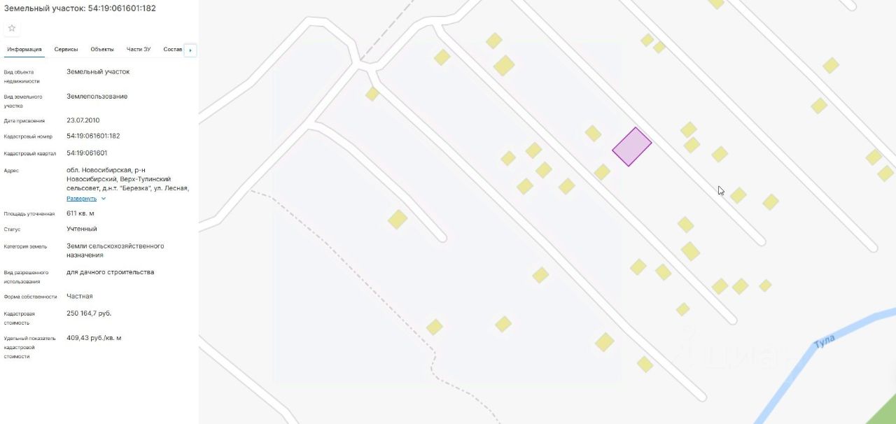 Земельный участок (земли сельскохозяйственного назначения, для дачного строительства), площадь 611 +/-17 кв.м., к/н: 54:19:061601:182 (арест)