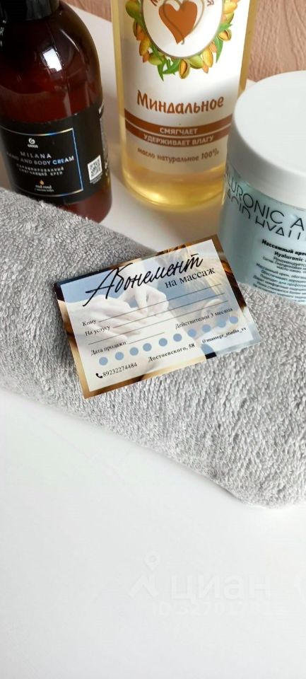 - Полностью оборудованная студия площадью 34 м²: просторный кабинет массажа и кабинет эстетической косметологии, удобная зона ожидания.