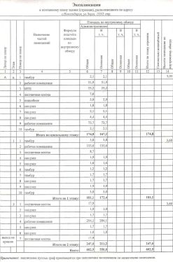 Общая площадь здания 602,9 м². Два надземных этажа, первый 181,1 м², второй 247 м² и цоколь 174,8 м²