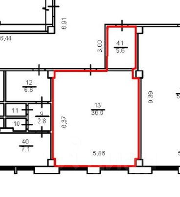 • Планировка: Два смежных кабинета (36,6 м² и 5,6 м²).