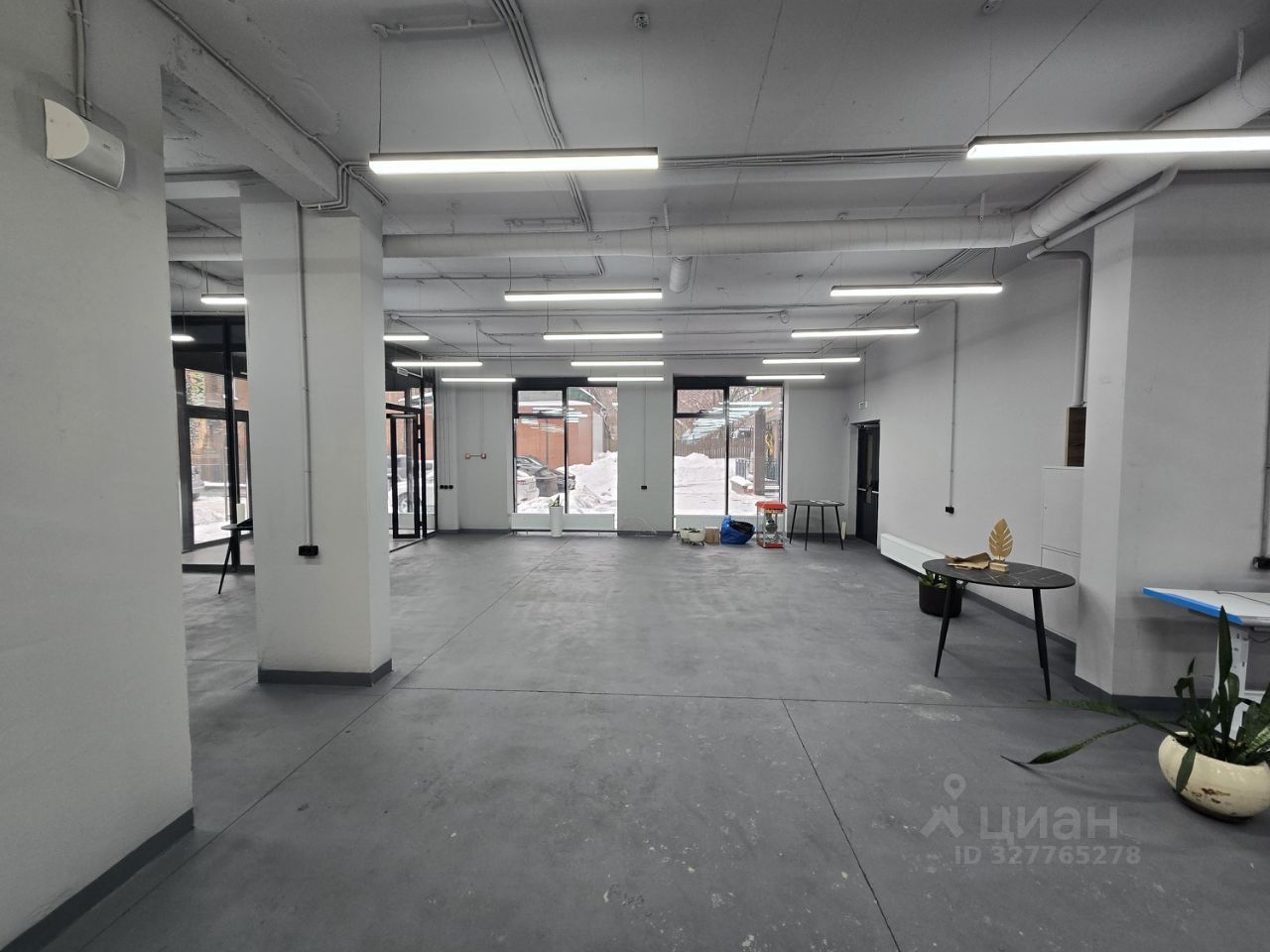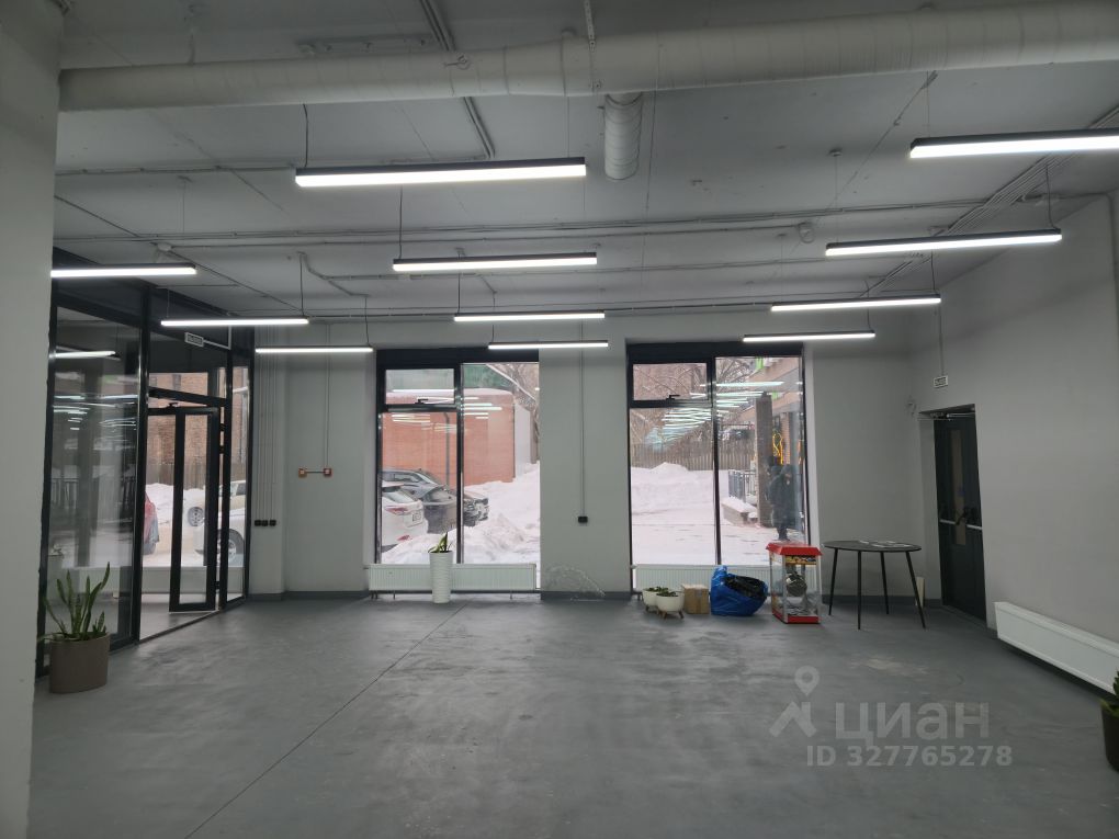 Помещение имеет витражные окна на три стороны, потолки, высотой 3,5 метра и отдельный вход с улицы, а также запасной из апартаментов.