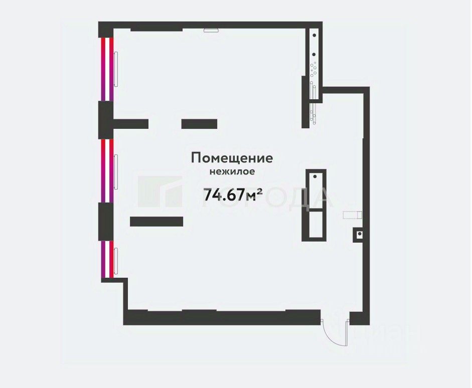 Коммерческое помещение 74,67 м² на 1 этаже. ЖК "Страна.Береговая", Новосибирск.