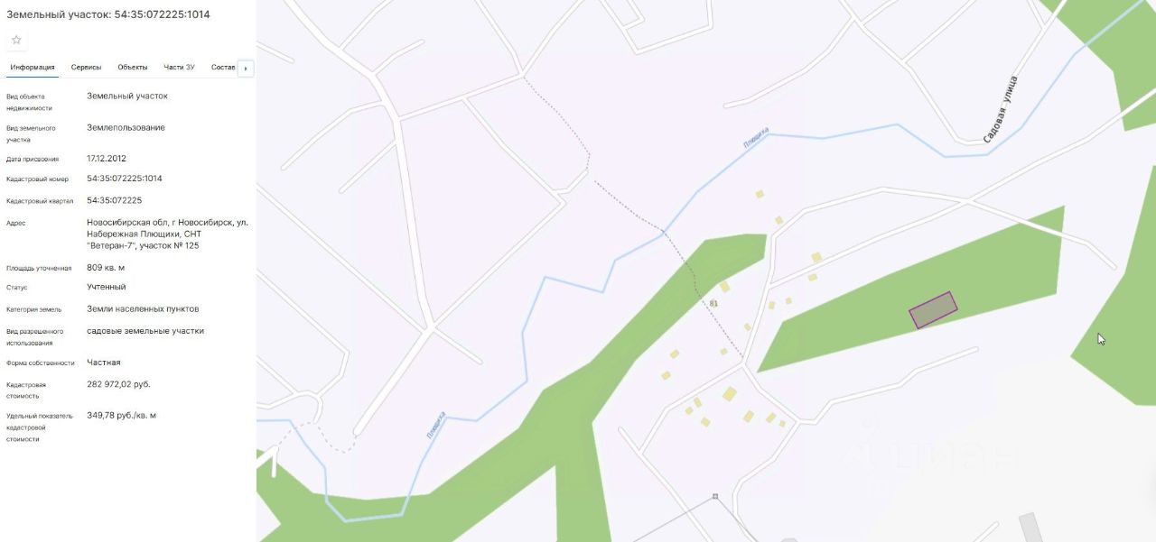 Земельный участок (земли населенных пунктов, садовые земельные участки), площадь 809+/-10 кв.м., к/н: 54:35:072225:1014 (залог, повтор)