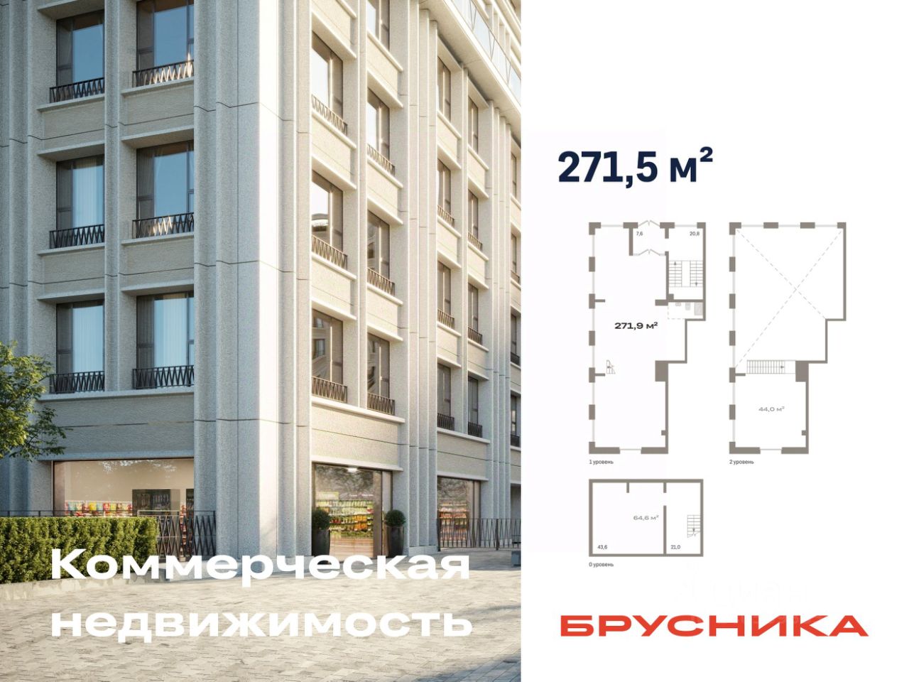 Помещение свободного назначения на 2 этаже, общая площадь 271.5 кв.м., без отделки. Стоимость помещения 57,000,000 руб., цена за кв.м 209,944 руб.