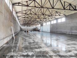 Пол бетонный, ровный, частично беспылевой