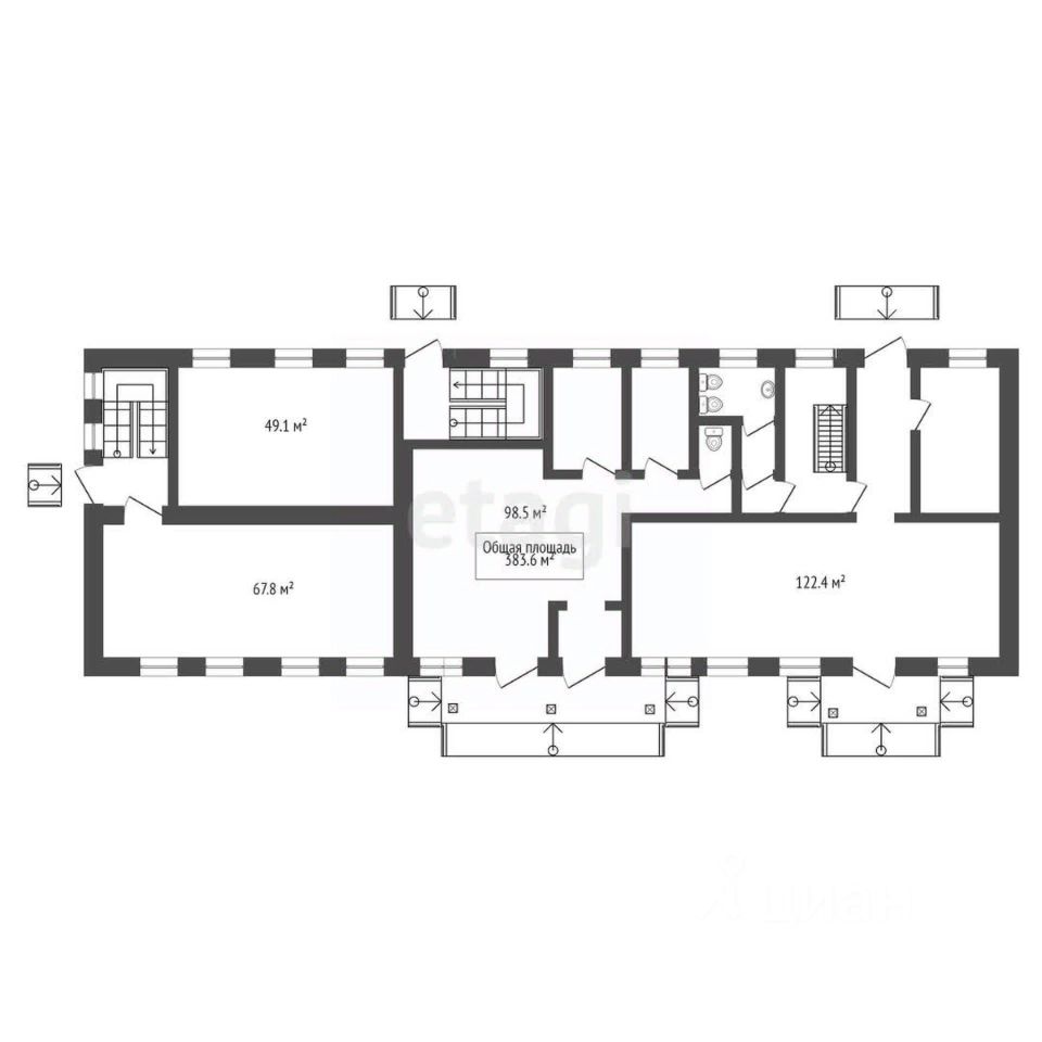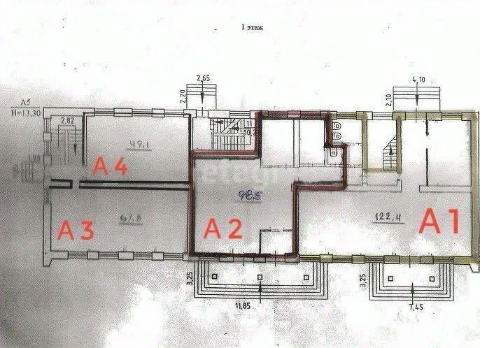 Предлагается к продаже помещение свободного назначения на первой линии площадью 383.6 м² на 1 этаже и 405.2