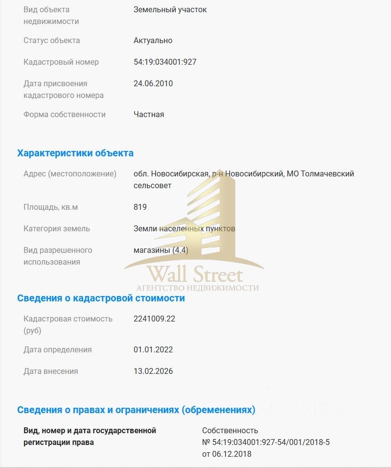 Продаётся участок на первой линии у основной дороги с. Толмачёво