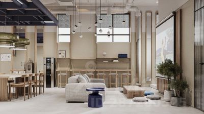 Здания объединяет стилобат — общее пространство лобби с ресепшен, соседским центром для работы, развлечений и мероприятий, магазинами и другой инфраструктурой в формате "тапочной" доступности, без необходимости покидать комплекс. Здесь же колясочные, санитарные комнаты, лапомойка. Для жителей предусмотрены подземный паркинг с сервис-станцией и кладовые для хранения сезонных вещей.