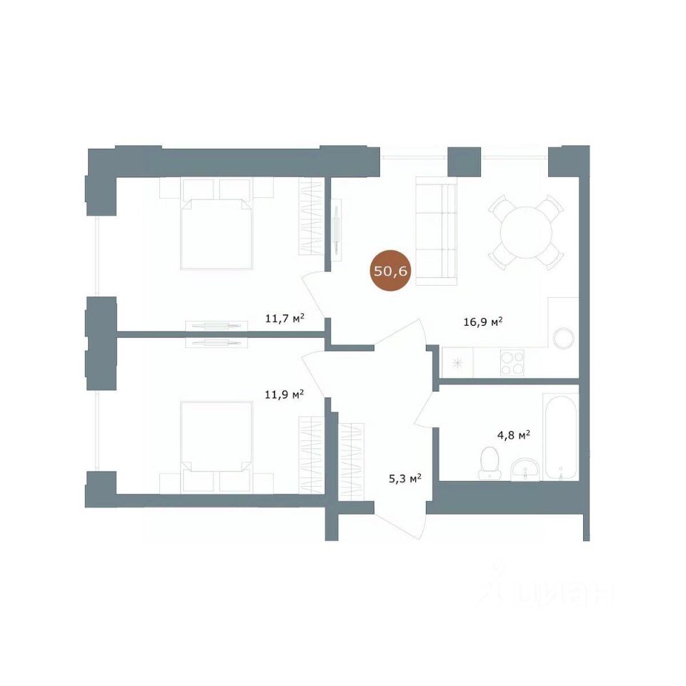 Общая площадь50,6 м²