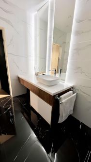 Современный ремонт с использованием самых дорогих материалов. Никакого ламината, пластиковых столешниц, и натяжных потолков.